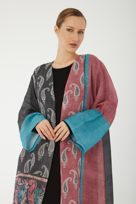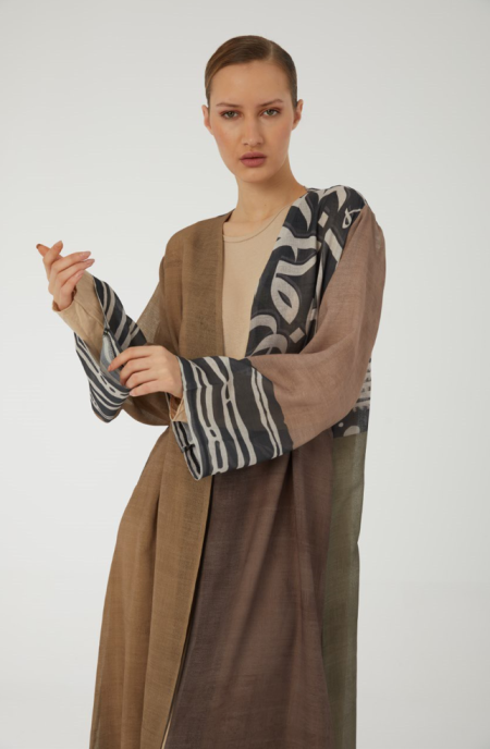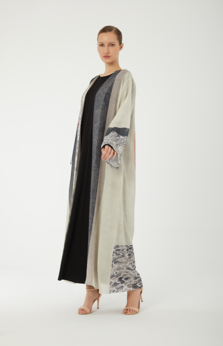 Description Details   crepe fabric simple Bisht Abaya grey   Info and Care Color: grey Neck type: halter Apparel type:  bisht abaya Model height: 165 cm Size shown in image: 38 Model measurements Bust: 89 Waist: 65 Hips: 94 Product Code: Sku:230205/31