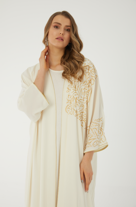 د.إ 1,075.00Original price was: د.إ 1,075.00.د.إ 700.00Current price is: د.إ 700.00.Description Details crepe fabric simple Bisht Abaya beige with green printed Info and Care Color: beige Neck type: halter Apparel type:Â bisht abaya Model height: 165 cm Size shown in image: 38 Model measurements Bust: 89 Waist: 65 Hips: 94 Product Code:Â Sku:230205/09