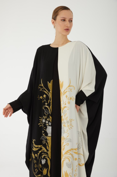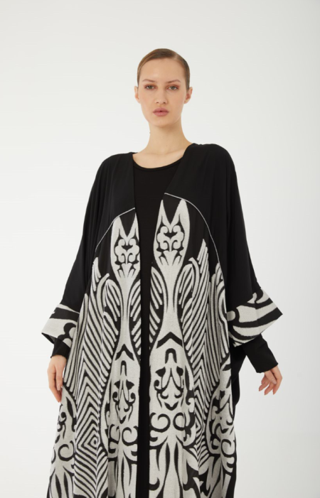 د.إ 1,075.00Original price was: د.إ 1,075.00.د.إ 700.00Current price is: د.إ 700.00.Description Details crepe fabric simple Bisht Abaya black & off white Info and Care Color: black off white Neck type: halter Apparel type:Â bisht abaya Model height: 165 cm Size shown in image: 38 Model measurements Bust: 89 Waist: 65 Hips: 94 Product Code:Â Sku:230205/12