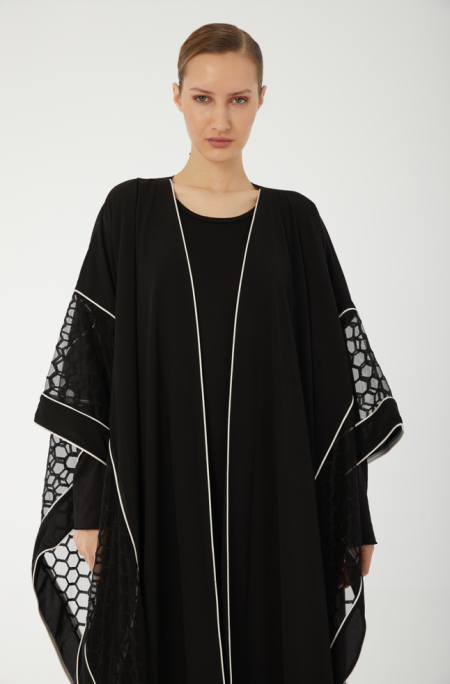 د.إ 1,075.00Original price was: د.إ 1,075.00.د.إ 700.00Current price is: د.إ 700.00.Description Details crepe fabric simple Bisht Abaya black & white Info and Care Color: black Neck type: halter Apparel type:Â bisht abaya Model height: 165 cm Size shown in image: 38 Model measurements Bust: 89 Waist: 65 Hips: 94 Product Code:Â Sku:230205/13