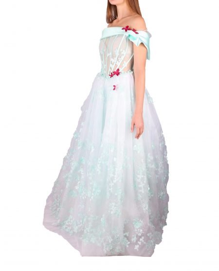 Description Details Off shoulder Gown dress Secure zipper. Detailed A-line Dress Tulle fabric Red flowers small white flowers on the entire dress Info and Care Color: Green Neck type:Â Â Off shoulder Apparel type:Â Gown Dress Model height: 176 cm Size shown in image: 38 Model measurements Bust: 84 […]