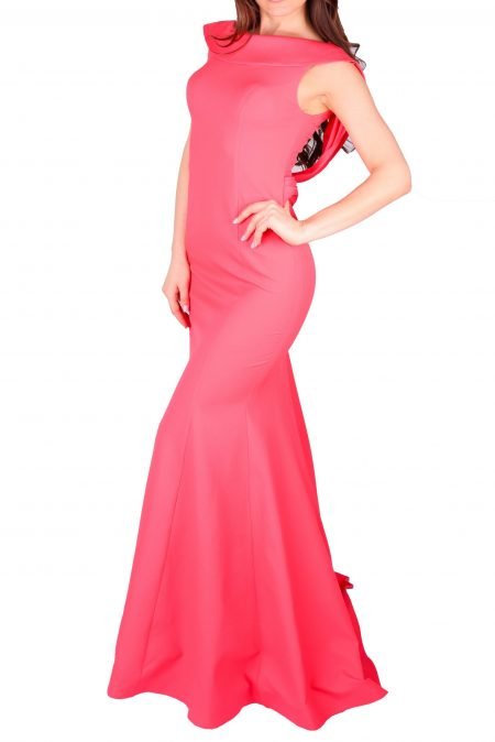 Description Details Crepe Fabric Elegant simple dress Boat neck and sleeveless Secure zipper Mermaid Cut Info and Care Color: Fushi Neck type: Boat neck Apparel type:Â Gown Dress Model height: 175 cm Size shown in image: 38 Model measurements Bust: 84 Waist: 62 Hips: 93 Product Code:Â Â Sku 161004/06