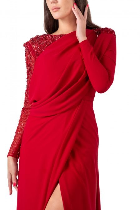 د.إ 3,540.00Original price was: د.إ 3,540.00.د.إ 2,300.00Current price is: د.إ 2,300.00.Teffta Fabric A perfect choice for your special occasion look High Knee A line Evening Dress Secure zipper Info And Care Color- Blue, Olive, Fuchi Neck type- Straight Across High Knee Apparel type- Evening Dress Model height- 175cm Size shown in image- 38 Model measurements-Bust :82 Waist :65 […]