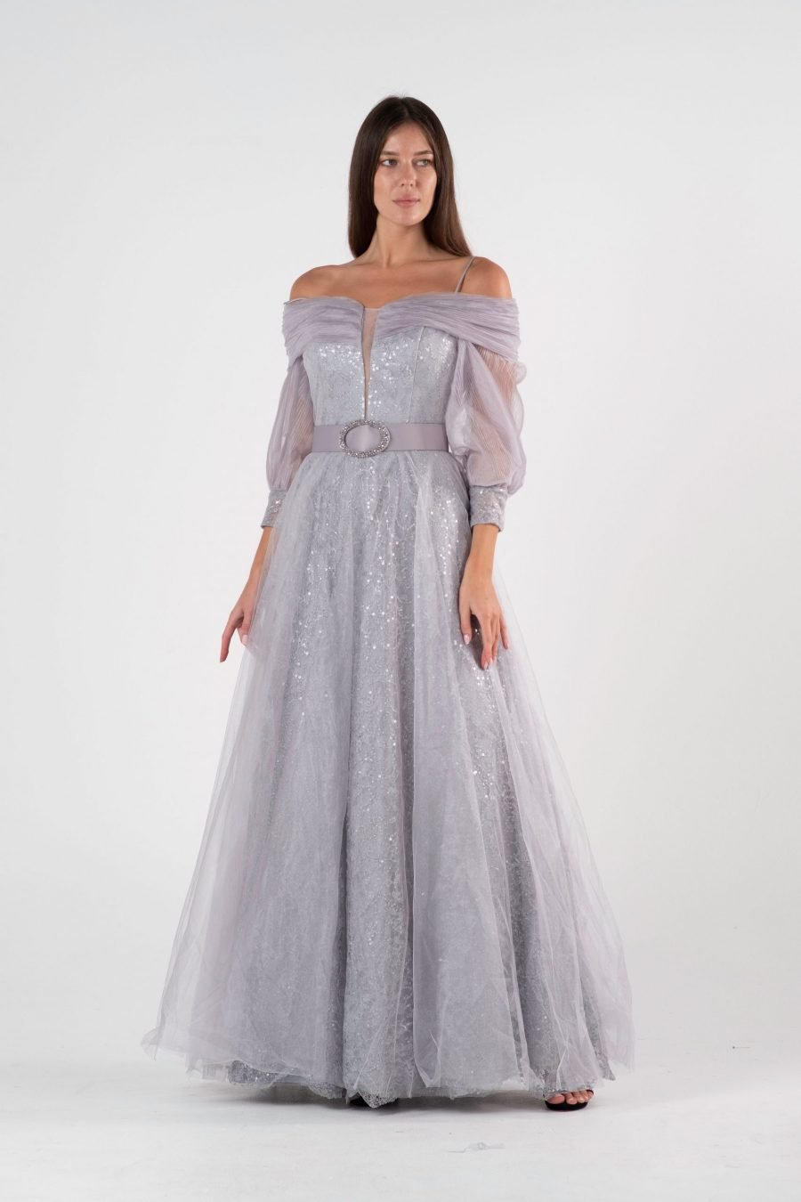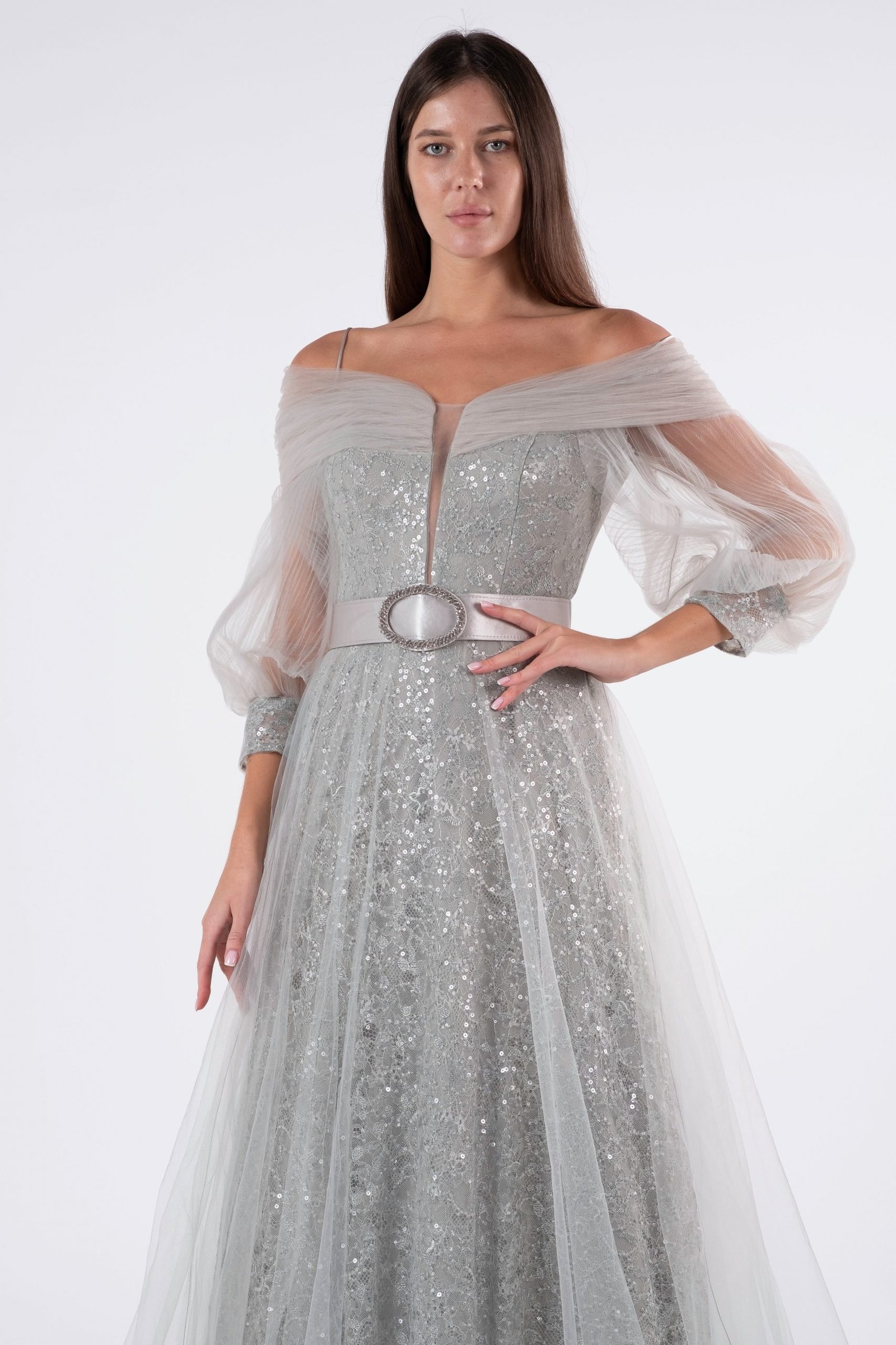 - This dress is made of embroidered tulle with sheer sleeves with open sleeves and the dress covers a delicate layer of tulle that gives you a charming look that catches the eye